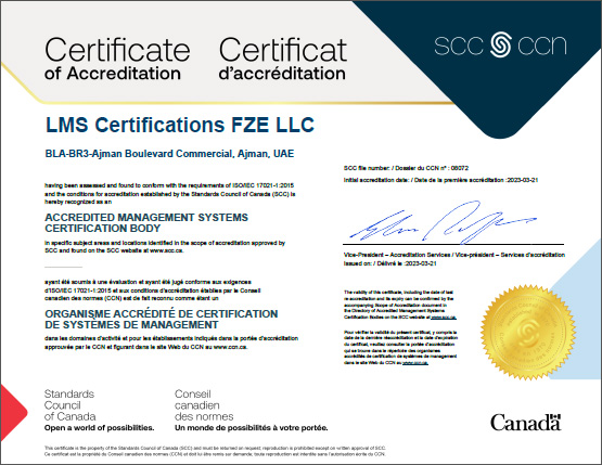 Being impartial, and being perceived to be impartial, is necessary for LMS Certifications FZE LLC to be able to deliver a credible verification service that provides confidence to our clients, the public and all other entities in the country.